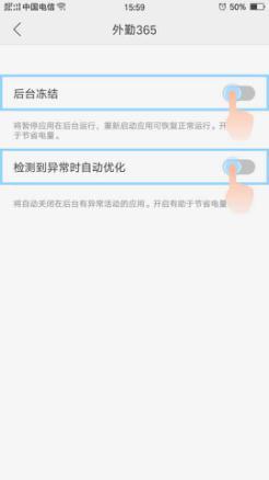 三、手机设置-电池—在耗电保护中找到外勤365—将后台冻结和检查异常自动优化都关闭