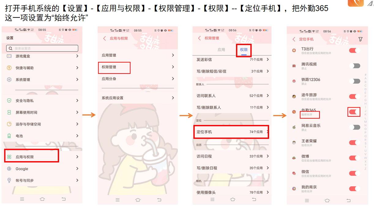 1.打开vivo自带的i管家,点击 应用管理-权限管理-权限-自启动-外勤365(打开)