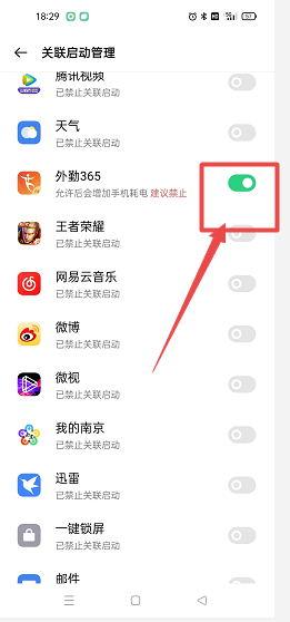 5、手机设置——应用管理——应用列表——选择外勤365——耗电管理,打开允许完全后台行为,允许应用自启动,允许应用关联启动
