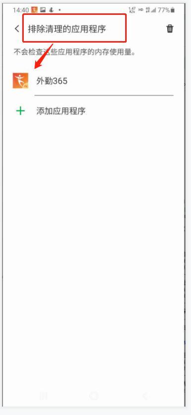 2、进入自动运行程序—>找到外勤365进行勾选—>添加外勤365—>至排除清理的应用程序。