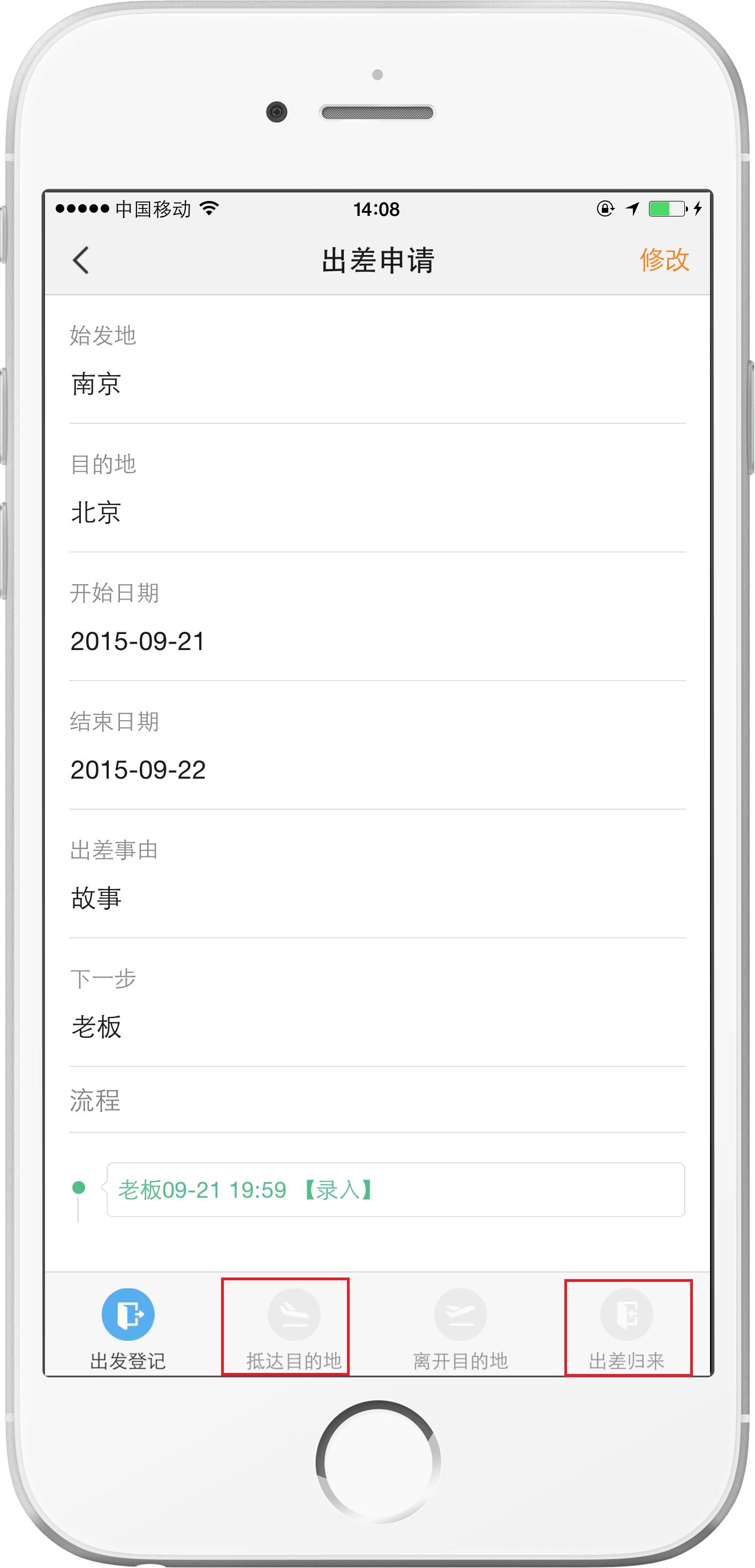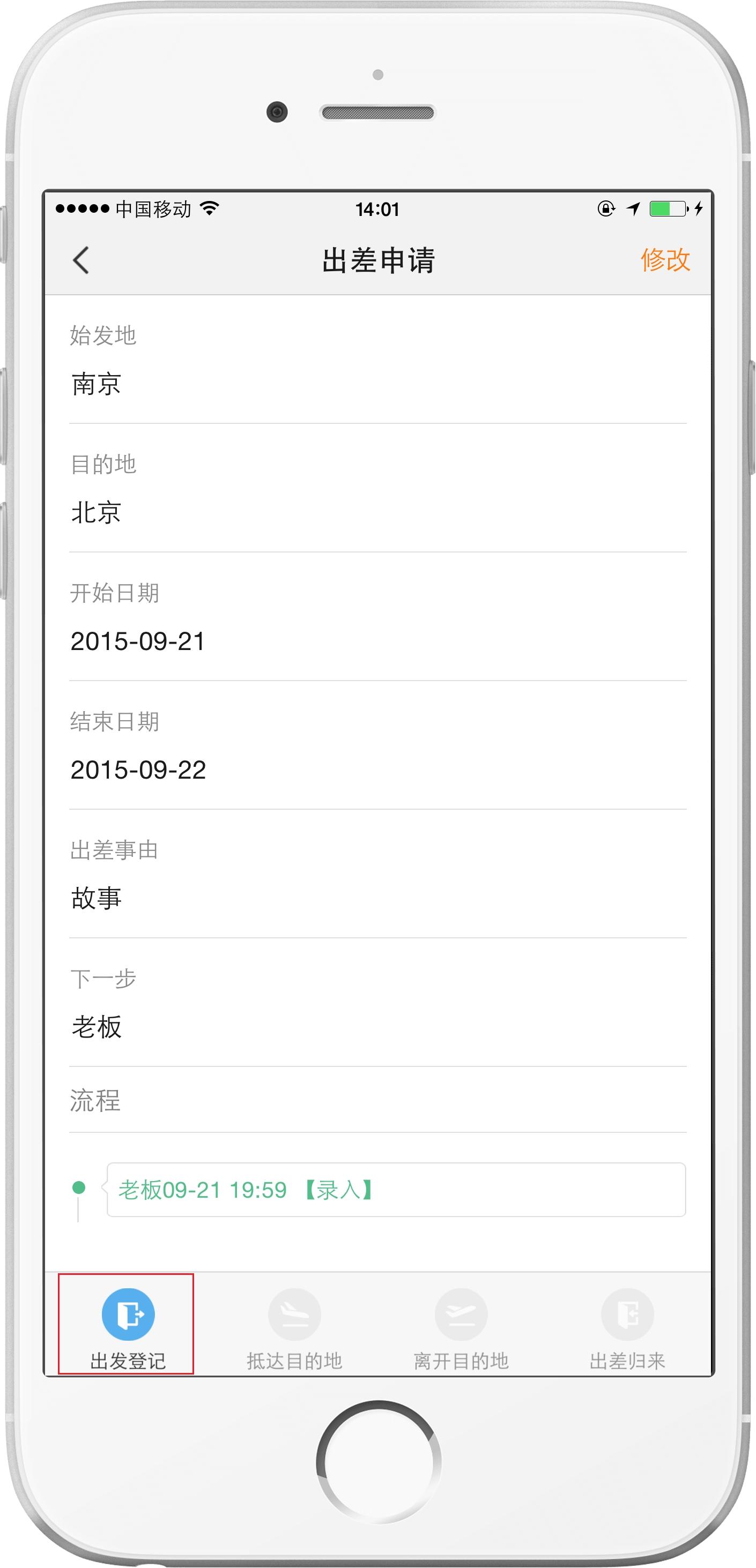 同时,支持抵达登记、离开登记、出差归来登记等。