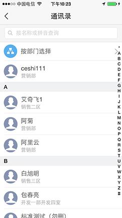企业所有员工打开外勤365手机端通讯录即可查找所有人员信息,并可直接拨打电话、发短信。