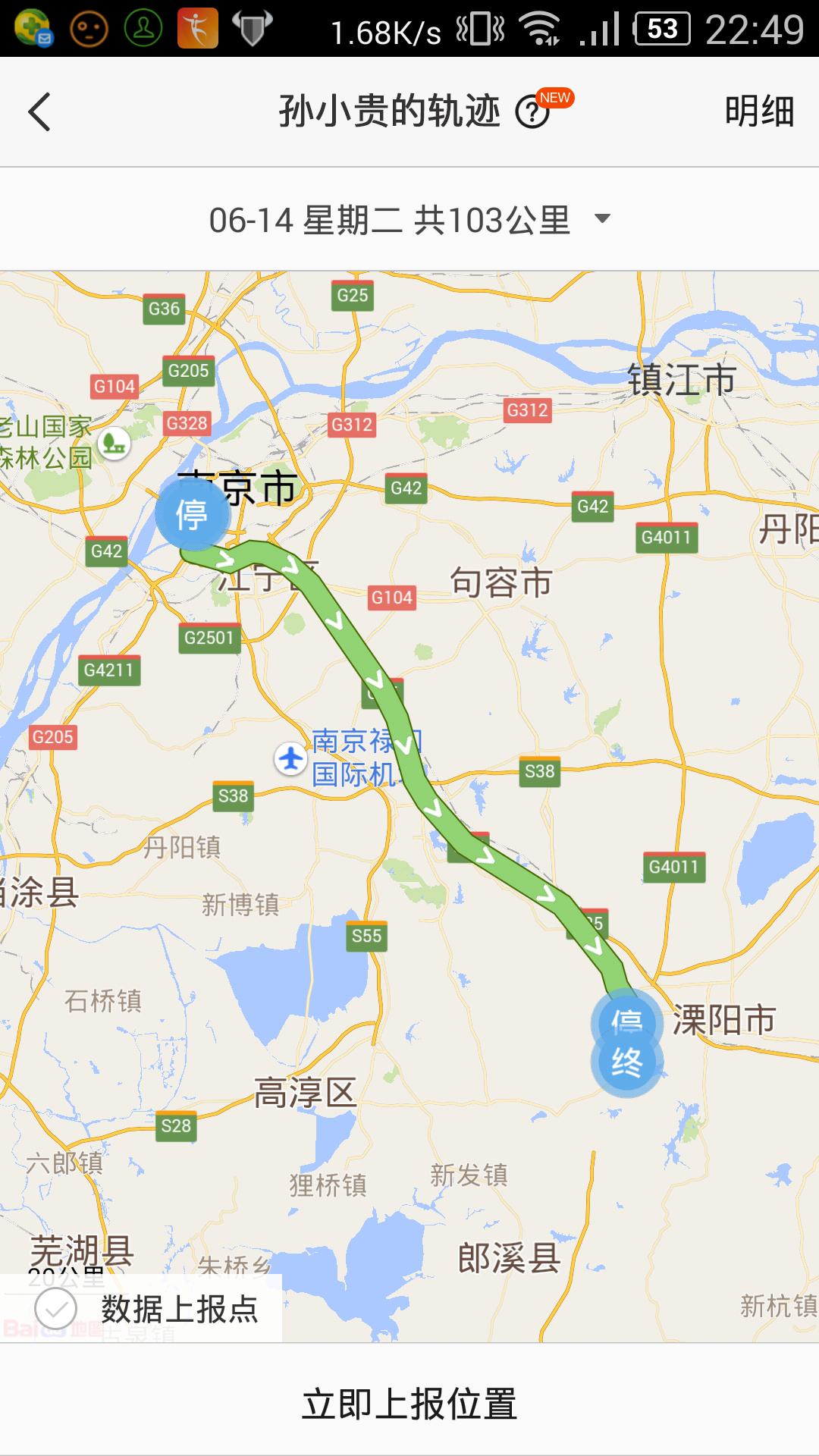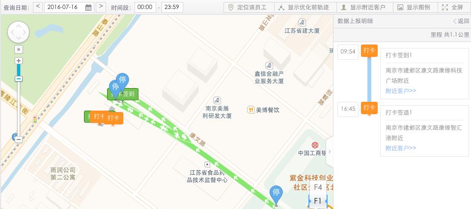 手机端可在员工位置查看员工轨迹和明细以及历史轨迹;同时记录员工的总里程数。