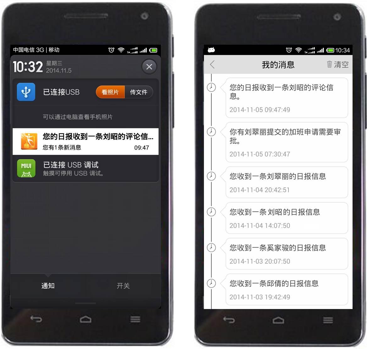 外勤365提供消息推送功能,通过在通知栏主题式提醒,企业所有人员点击提醒即可激活消息信息进入消息列表,查看详细内容。