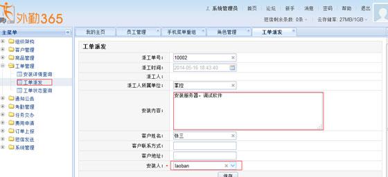 企业领导可以通过“工单派发”派发业务员去某地执行任务。