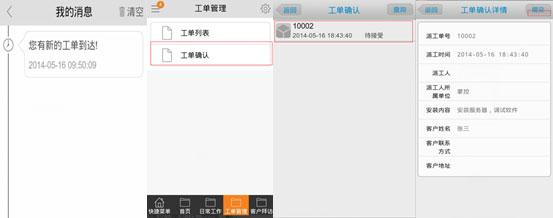 业务员会收到派发通知,通过手机确认工单。