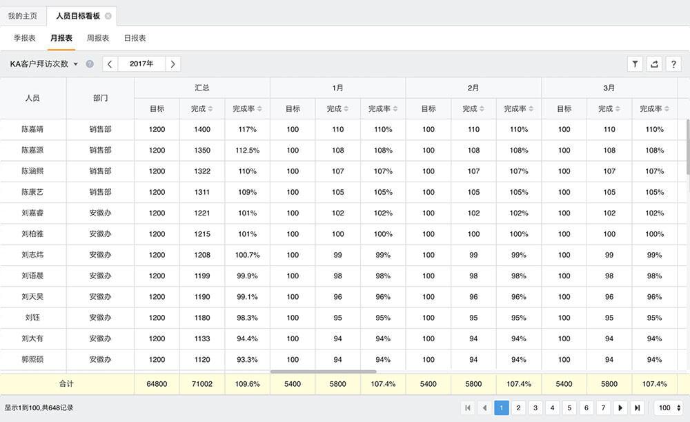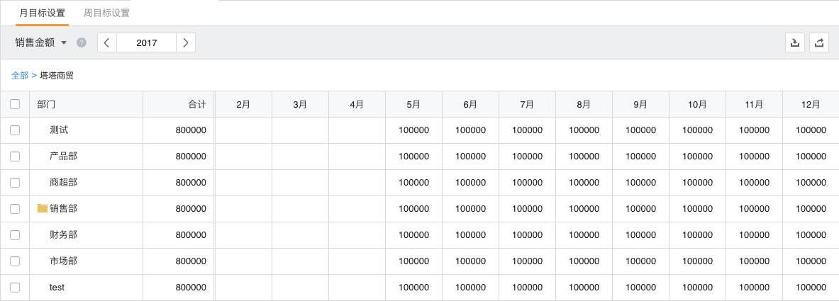 也可以按照团队/部门设置考核目标,部门领导、老板可实时关注团队业绩完成情况。