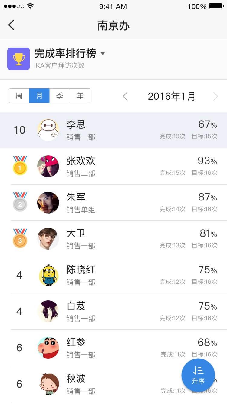 可以查看成员的排名,快速找到谁做的好谁做的不好;