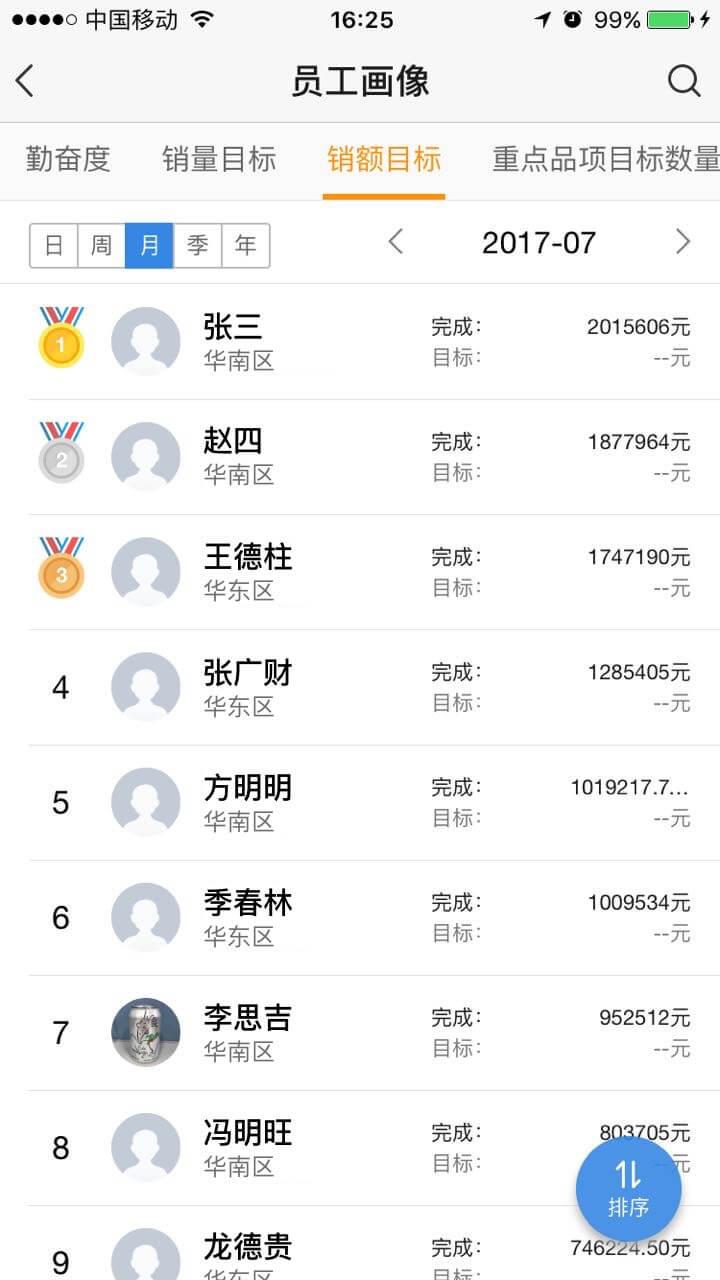 在员工画像可查看所有指标的人员排名,奖惩有据。