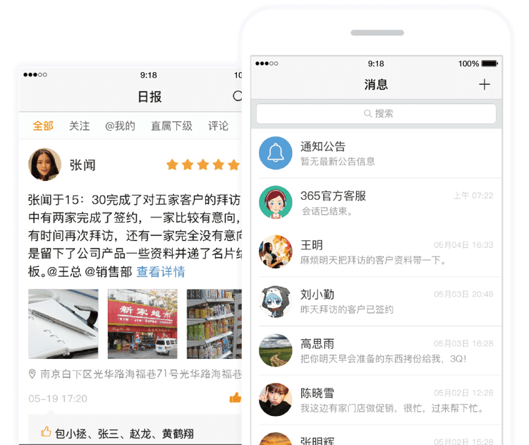 即时聊天消息让员工之间无障碍沟通,业务操作推送消息给员工无时差提醒,重要性工作自动进入员工待办任务列表,重要通知快速下发提醒员工。