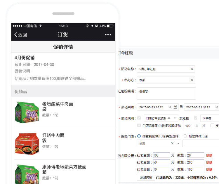 还可以发起订货抽奖活动,根据订单大小给予一定数额的现金奖励,保持终端门店的活跃度。