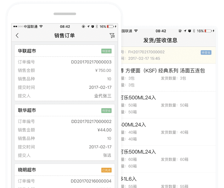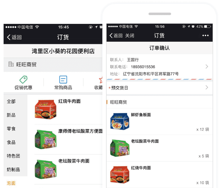 终端门店只需要关注微信企业号即可在线订货并查询订单状态,简单易用,无需安装APP,大大降低了终端门店的使用难度。