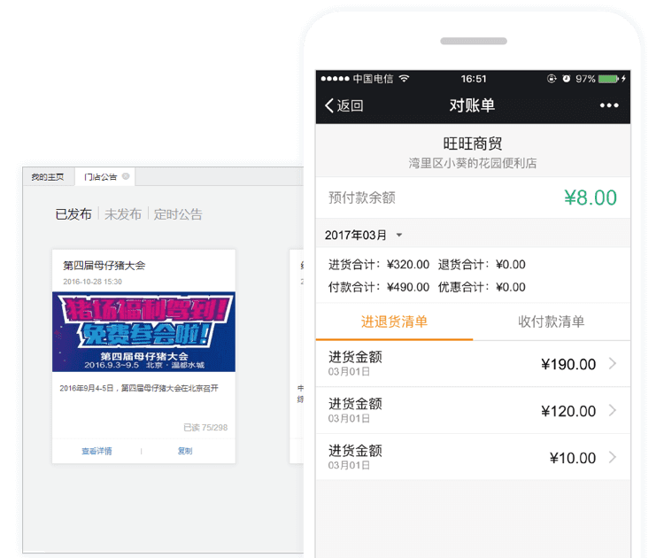 终端门店也可以随时查询对账单,在线反馈问题,大大提升终端门店的客户满意度。