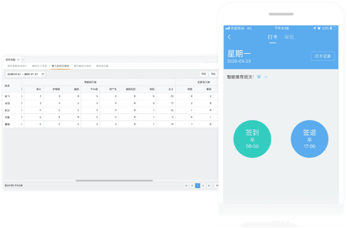 提供多维度考勤综合分析报表,便于计算考勤工资。