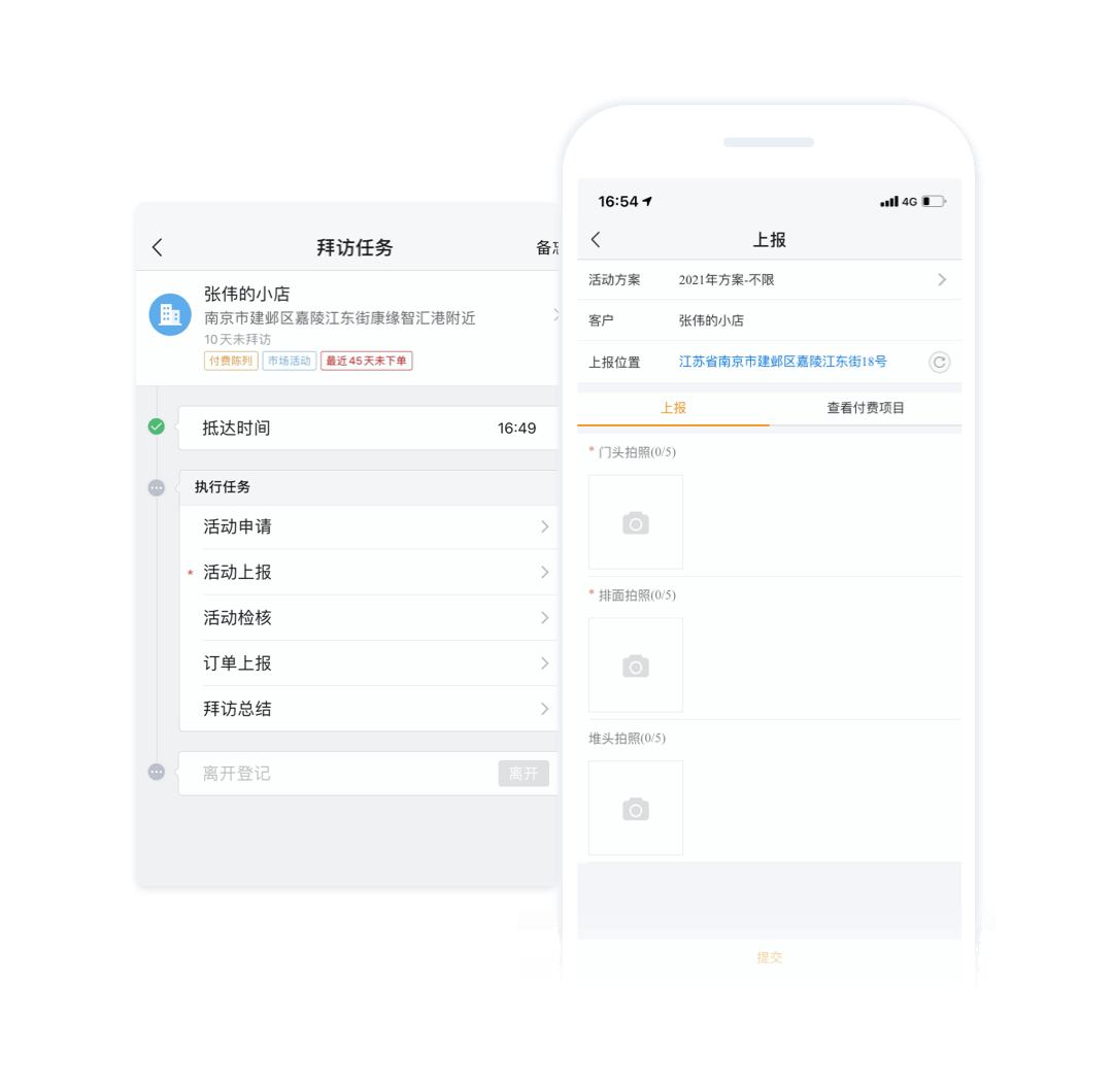 活动执行、活动检核支持嵌入sfa拜访任务中,不同的活动场景支持配置不同的上报模板,满足不同活动所采集信息不同的管理需求