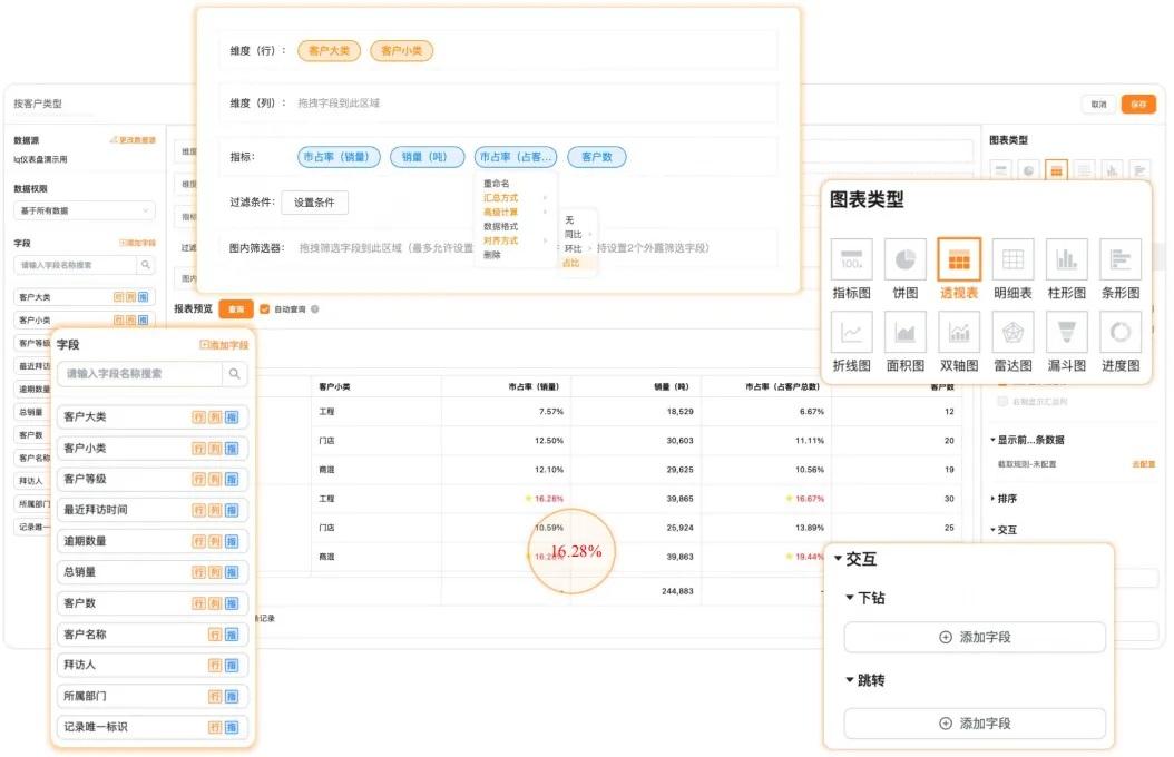 “双11大促过去半年了 能帮忙分析下现在的销售情况嘛?” “什么?报表排期还要等两周?业务都凉了!” “领导要看终端陈列达标率 业务员还在用Excel手动算?” 传统报表不够灵活,太依赖IT部门开发。不仅排期长,需求层层审批,IT开发动辄数周;而且数据孤岛遍地,分析结果总比业务慢半拍;同时分析-决策无法在1个系统实现闭环。 传统报表开发 VS BI报表开发 能力维度 传统报表 勤策BI 上线速度 3周+ 1小时响应 报表配置 需编写SQL+代码 拖拽式多表拼接 数据时效性 静态数据 实时动态更新 权限灵活性 粗粒度角色管控 行+列级细粒度控制 总拥有成本 年均百万级投入 成本降低70% 勤策BI的答案:“让业务自己动手,拖拉拽秒出专业报表”! 什么是勤策BI?企业的“数据分析外挂” 勤策BI不是普通报表工具,而是可以自由拼接的“数据乐高”: ✅ 行业专业度:深耕快消十年,预置拜访、库存、促销等20+场景分析模板; ✅ 权限无死角:从菜单到单条数据,5层权限管控,敏感信息绝不外泄; ✅ 分析有依据:22种图表+智能下钻,让数据自己“讲故事”。 勤策BI核心架构