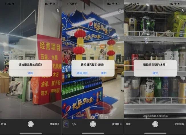 (陈列识别结果展示) 场景三: 空间受限,AI“拼”出全景 KA卖场里高耸入云的高货架及冷风柜,夫妻店狭窄的过道,想拍一张完整的陈列照片很困难。若是要分开拍摄多张照片,需要人工拼接、去重、统计,无形增加后台审核负担。 勤策解法:AI全景智能拼接与去重 1 前置拼接 分区拍摄,自动拼接成1张显示完整货架的照片,并提供重叠指引,适用于拍摄长货架。
