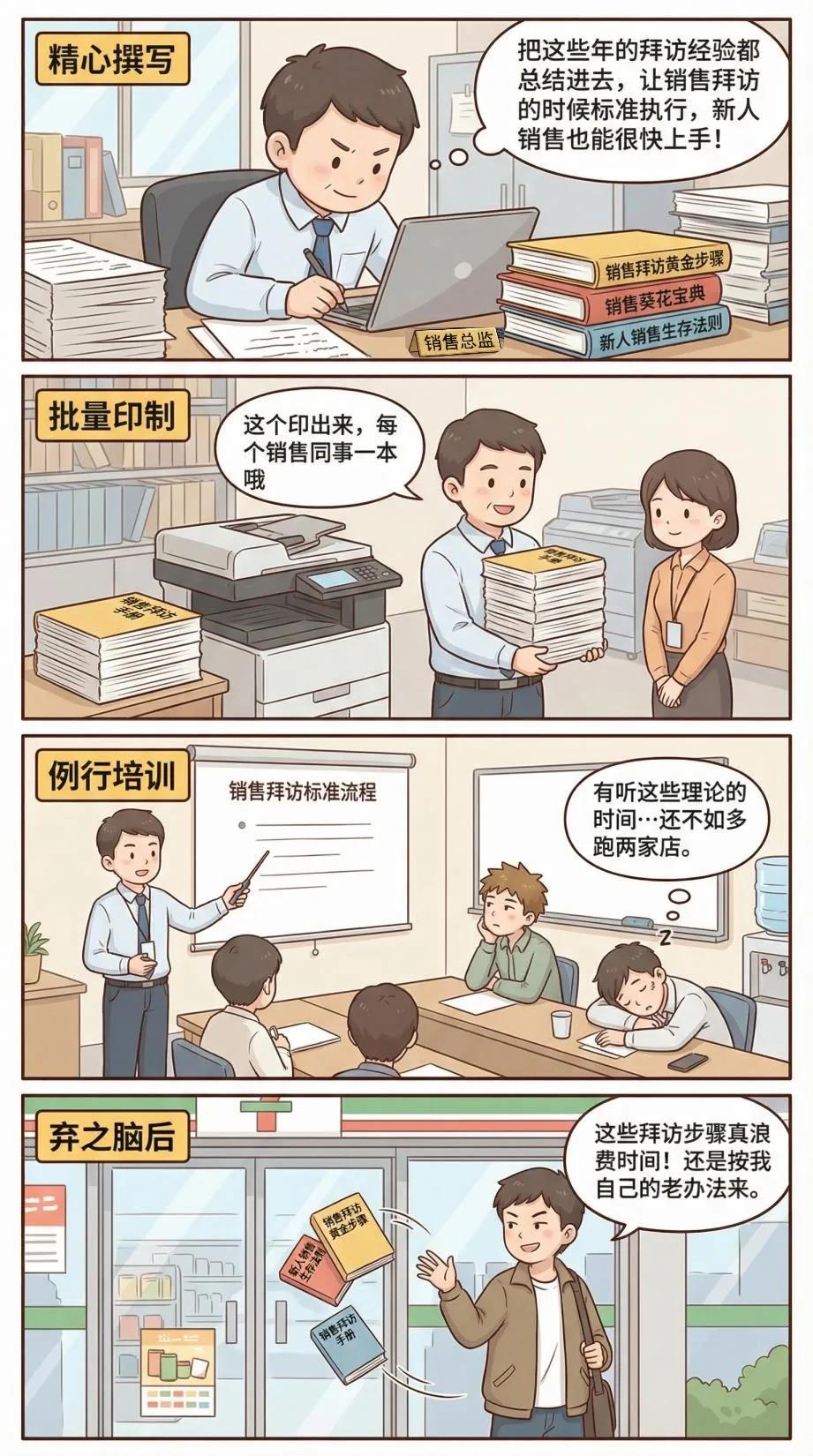 企业花费大量精力,依据经验总结出标准的销售拜访流程,并印成手册、反复培训。 然而,当这些步骤被要求落地执行时,经常被销售抛掷脑后,认为其是“浪费时间”和“表面功夫”。 销售人员执行不到位,忽略关键环节,甚至干脆不做业务动作,最终直接影响到动销。 很多企业将此归咎于执行问题。实则不然——根本原因在于,缺乏系统性支撑和有效的过程监管。 今天,我们通过一个年销售额超30亿的食品企业的真实案例,展示企业如何通过数字化工具将精心设计的销售拜访理论有效应用于实战。 01 客户痛点: 销售拜访执行混乱 行业沉淀近20年,这家食品企业早已打磨出贴合自身业务,成熟且细致的销售拜访规范。 但是面对数百名销售,人员管理的痛点,尤其在拜访执行侧,一直困扰着企业的销售管理者: ❌ 步骤无人监督:拜访动作缺乏系统性指引与强制闭环,销售执行全靠个人习惯,动作质量参差不齐,核心标准难以落地。。 ❌ 过程无法衡量:外勤无系统记录,工作依赖传统的水印相机与群聊汇报,信息碎片化,管理层难以掌握销售人员工作进度与效果。 ❌ 真实性无保障:销售人员上传的终端水印照片仅显示时间、图像和地点,销售领导无法考证门店反馈、陈列、数据上报的真实性与及时性。 ❌ 考核缺乏依据:KPI设定与执行过程脱节,难以进行精细化的绩效评估。